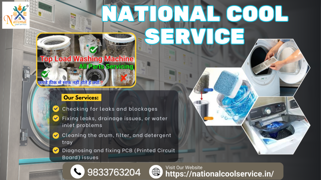 Are you facing issues with your washing machine? Is it making strange noises, leaking water, or not spinning properly? National Cool Service is your trusted choice for washing machine repair and service in Nalasopara, Vasai, Virar, and nearby areas. We provide all types of washing machine repair and service – front-load, top-load, semi-automatic, and fully